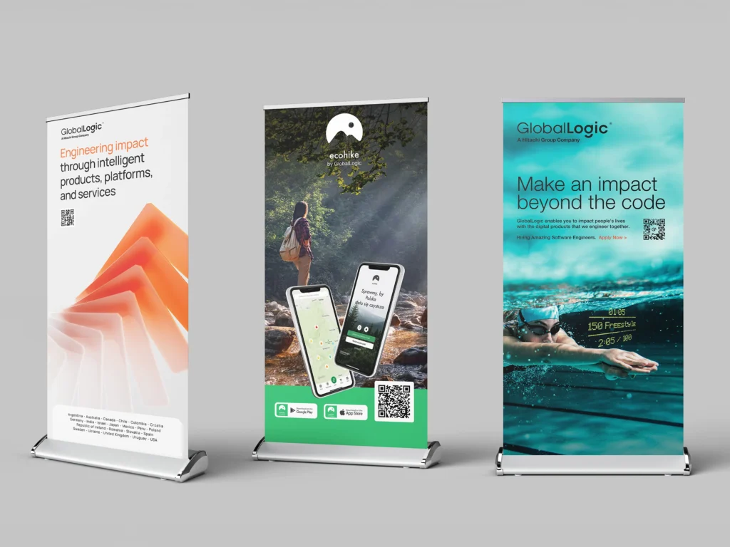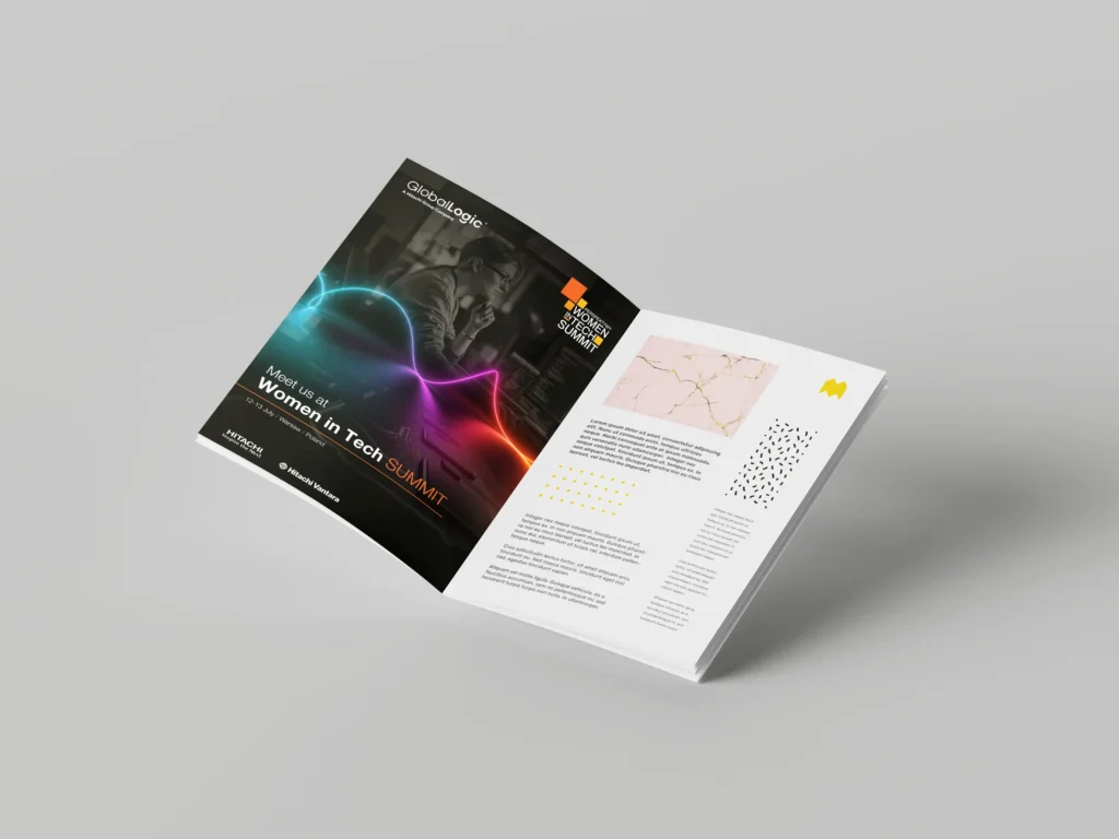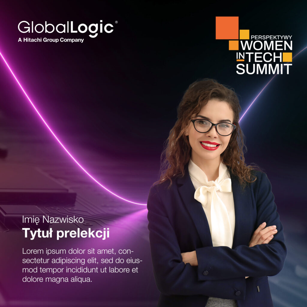 Przygotowaliśmy zestaw materiałów związanych z eventami, w których uczestniczyli specjaliści z GlobalLogic. Jednym z nich był „Women In Tech Summit”. Zaczynaliśmy od stworzenia Key Visual całego wydarzenia, kończąc na produkcji materiałów digital i wydrukach.