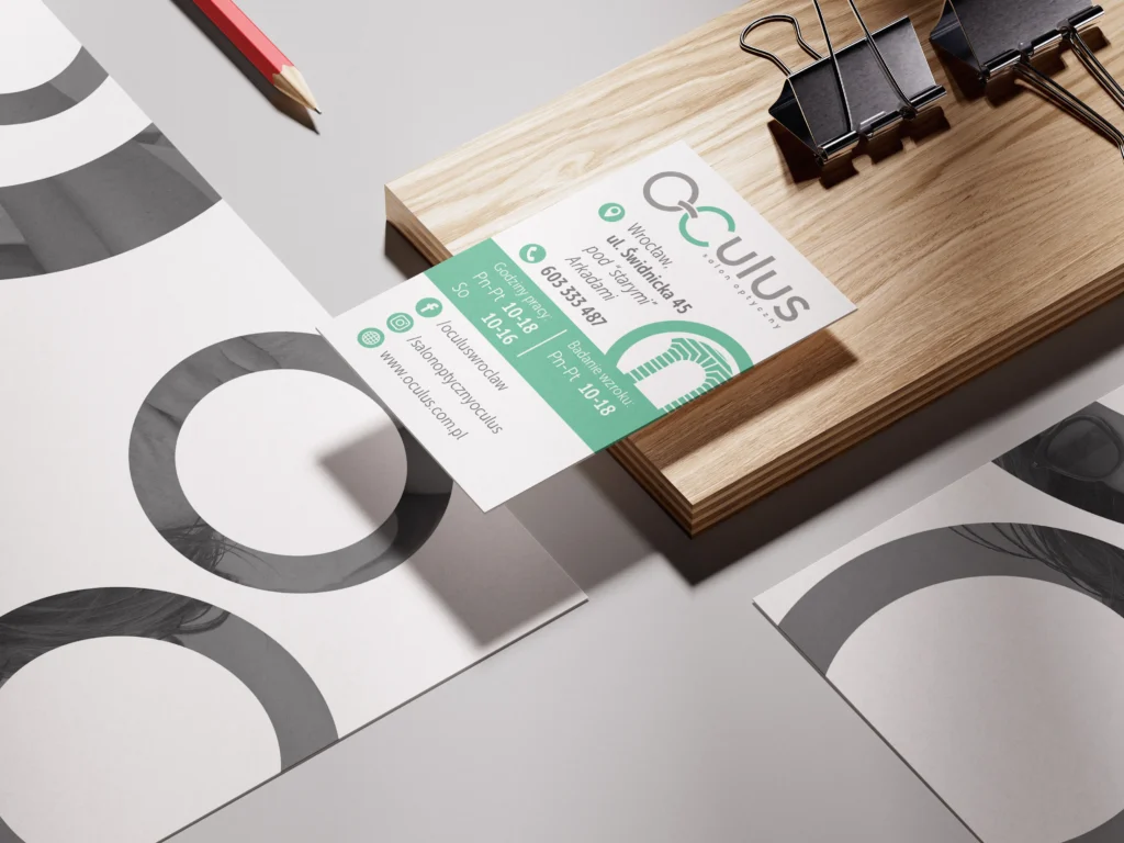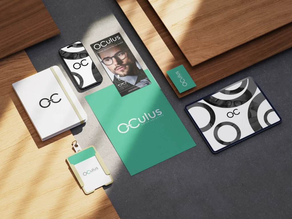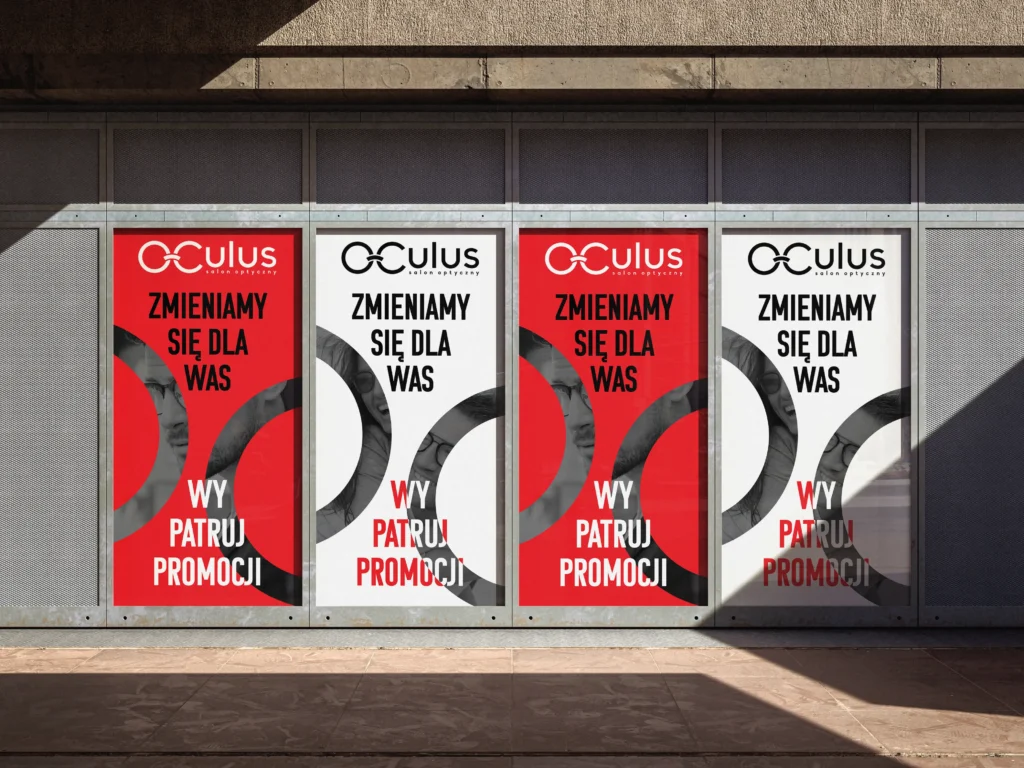 Współpraca z salonem optycznym Oculus. Rebranding, wsparcie kreatywne i wydruki..
