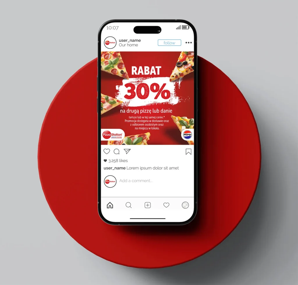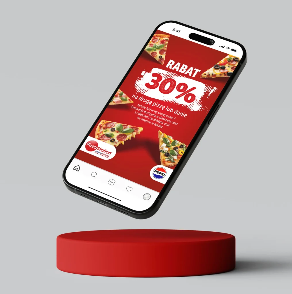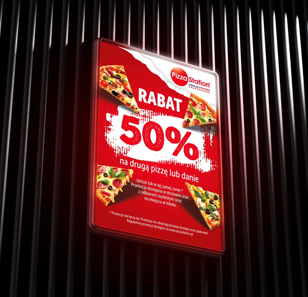 Projektujemy dla Pizza Station tak, aby projekt jednego KV był możliwy do wykorzystania w wielu kanałach komunikacyjnych – tak aby intensyfikować skuteczność przekazu.