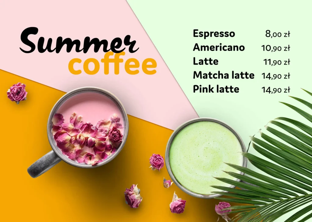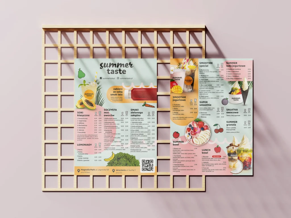 Menuboardy poza przyciąganiem wzroku powinny być czytelne i zrozumiałe. Takie właśnie projekty dostarczyliśmy dla Summer Taste. Dodatkowo zadruk do podświetleń w naszej drukarni charakteryzuje się wyjątkową intensywnością kolorów.