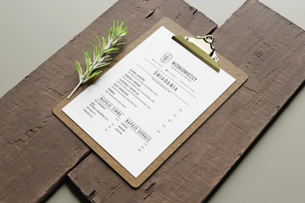 Karty menu śniadaniowego, ulotki, potykacze – wszystko co potrzebne do sprawnej komunikacji z klientami.