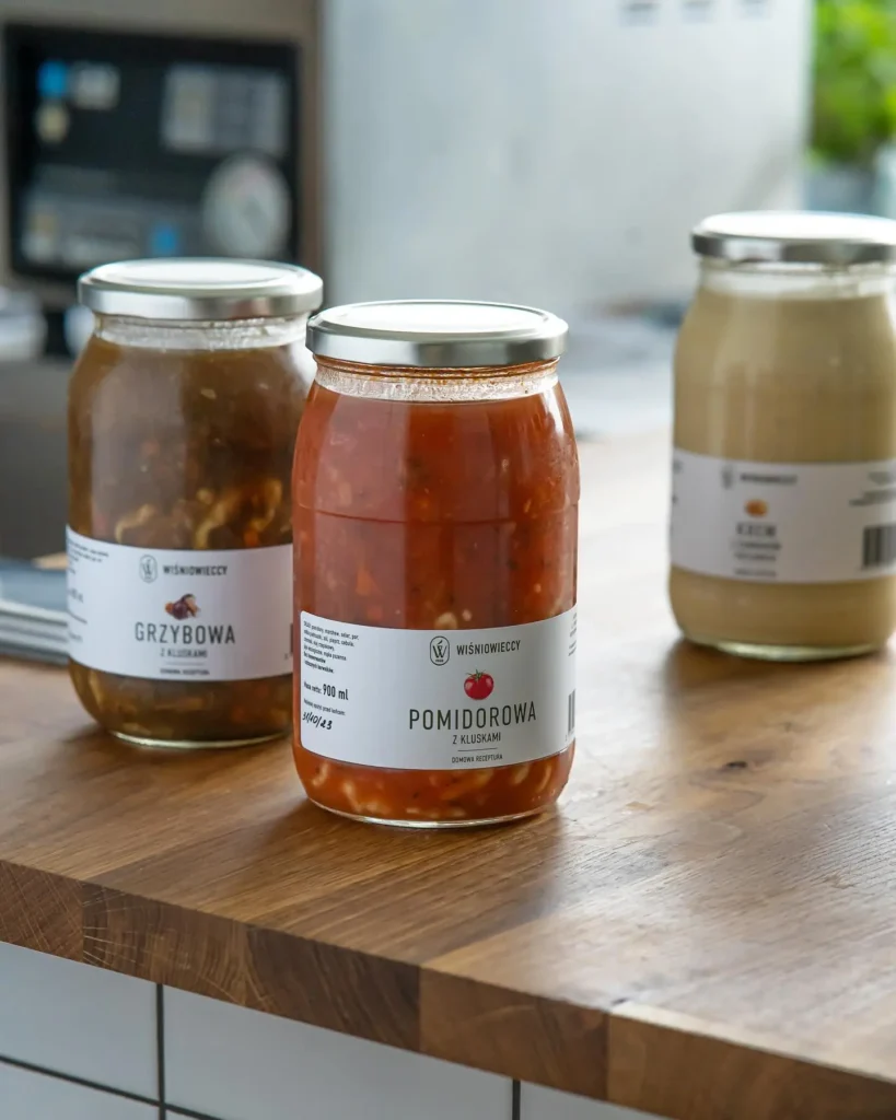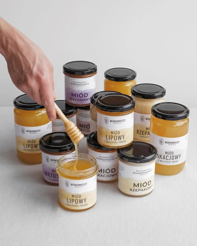 Wiśniowieccy produkują pyszności wg domowych receptur, a my dostarczamy piękne etykiety. Produkty spożywcze nie mogą czekać na etykiety, stąd zamówienia – projekt – druk realizujemy w tempie ekspresowym.
